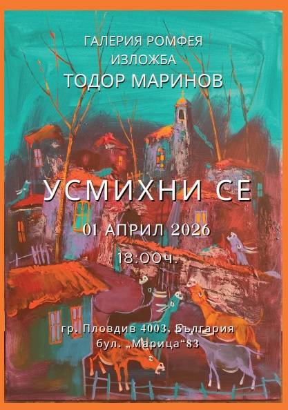 Официалното откриване на изложбата „УСМИХНИ СЕ“ е на 1 април 2026 г., галерия „Ромфея“, Пловдив. Предвиден е вернисаж 18.00-20.00 ч.